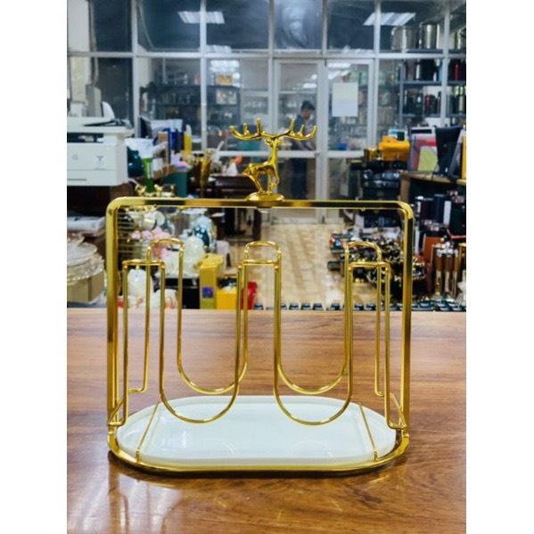 ✨Combo giá úp cốc hình đâu hươu mạ vàng và 6 cốc ống thủy tinh chụy nhiệt vân sần cao cấp