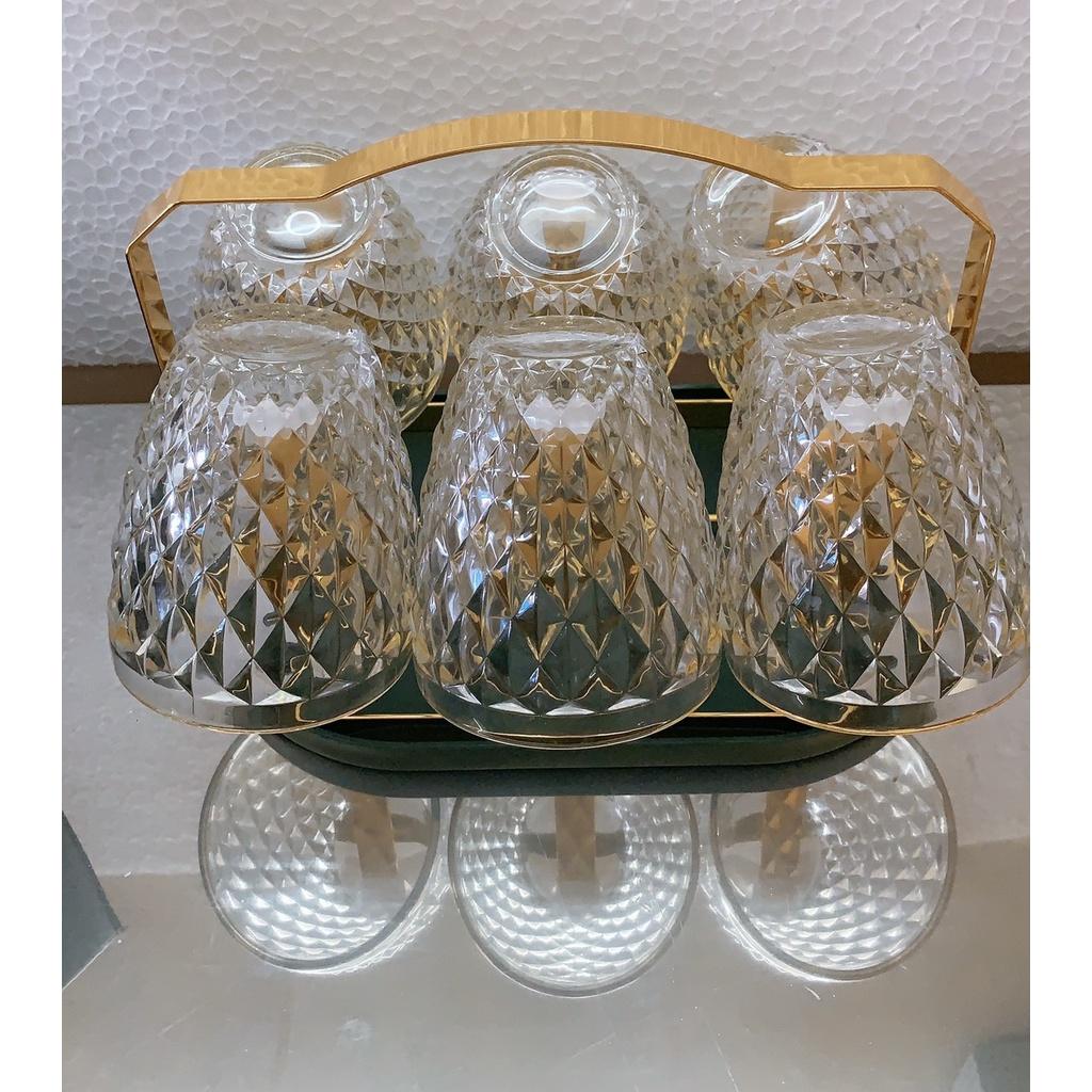 Chất liệu: thủy tinh Bộ sản phẩm gồm: 6 cốc thủy viền vàng VÀ GIÁ ÚP CỐC THEO HÌNH Thiết kế đẹp mắt, phù hợp tiện dụng Độ bền cao, chịu nhiệt tốt, hạn chế