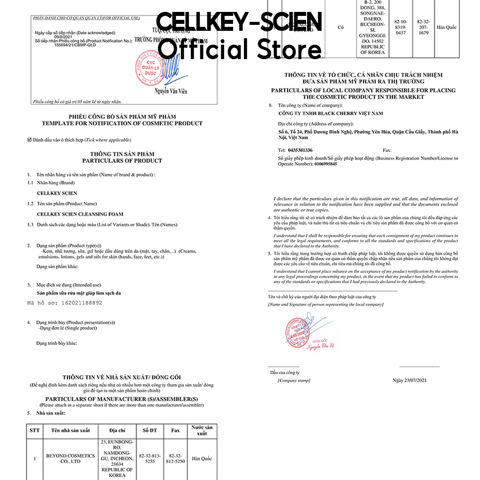 - Điểm đặc biệt là Cellkey-scien White Peeling Gel chỉ lấy đi lượng da chết trên da nên da chết sau khi được tẩy vẫn giữ màu trắng của da. HƯỚNG DẪ SỬ DỤNG: +Bước 1: Lấy 1 lượng Kem rửa mặt vừa phải ra lòng bàn tay rồi tạo bọt, sau đó massage nhẹ nhàng trên mặt chừng 30s rồi rửa lại bằng nước. +Bước 2: Sau khi rửa sạch mặt bằng Kem rửa mặt. Lau khô mặt và tay, lấy 1 lượng gel tẩy tế bào chết vừa đủ, massage đều trên bề mặt da khoảng 30~40s. Sau đó rửa lại bằng nước hơi âm ấm là xong. Rửa mặt sáng tối mỗi ngày, tuần chỉ tẩy da chết 2 lần. Lưu ý: Sau khi sử dụng đóng kín nắp sản phẩm, bảo quản nơi thoáng mát và tránh tiếp xúc trực tiếp với ánh nắng mặt trời. THÔNG TIN THƯƠNG HIỆU: Dòng sản phẩm tế bào gốc thực vật CELLKEY-SCIEN được tập đoàn COSMECCA (Một trong ba tập đoàn sản xuất mỹ phẩm lớn nhất tại Hàn Quốc) nghiên cứu và sản xuất. Tại Việt Nam, Công ty TNHH BLACK CHERRY VIỆT NAM là đơn vị nhập khẩu và phân phối duy nhất. Đặc biệt dòng sản phẩm tế bào gốc thực vật Cellkey-Scien này đã được cấp Giấy chứng nhận bảo hộ thương hiệu. Xuất xứ thương hiệu: Hàn Quốc Nơi sản xuất: Hàn Quốc Dung tích: