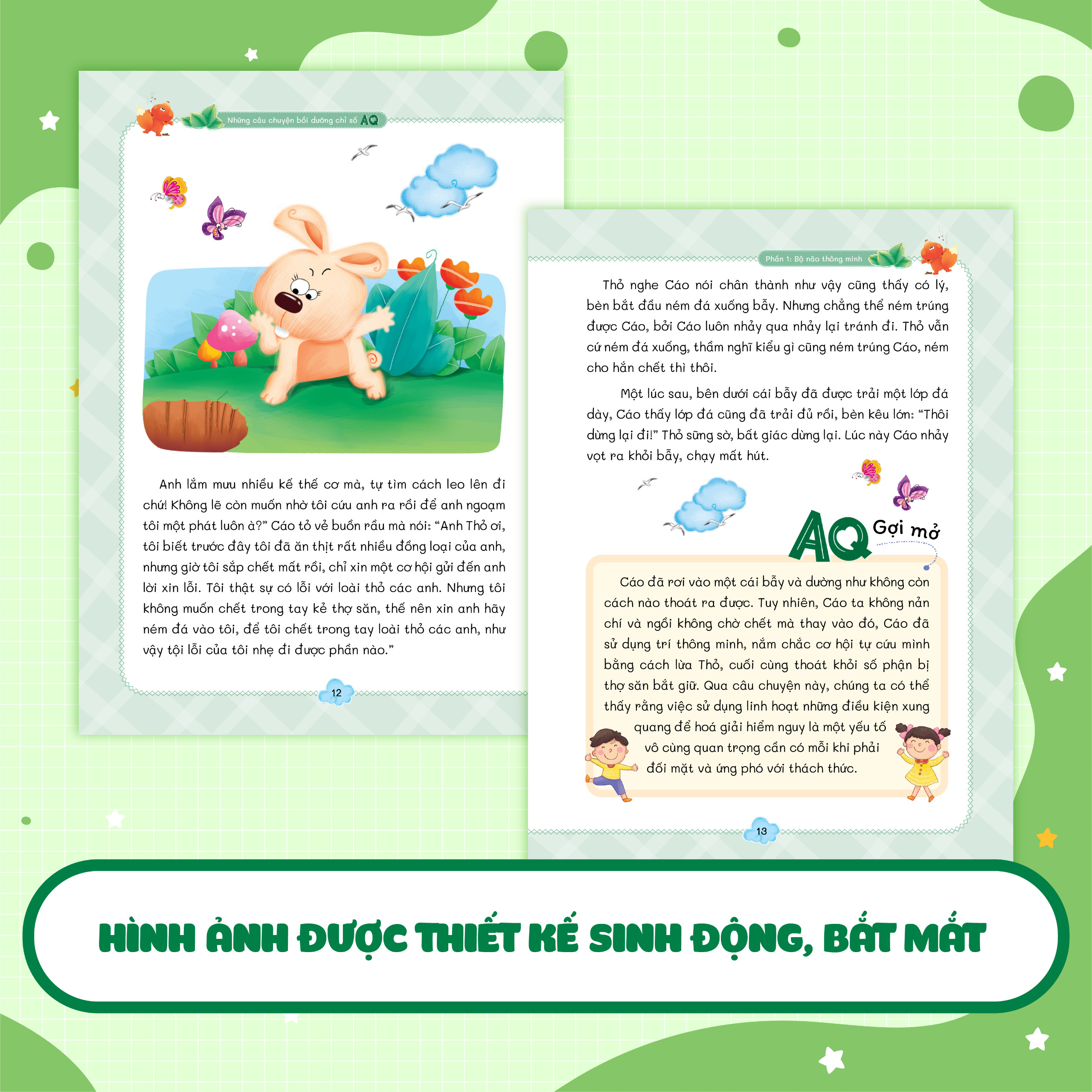 Sau mỗi câu chuyện, cuốn sách còn có phần "gợi mở AQ" giúp các em hiểu hơn về những bài học câu chuyện muốn truyền tải, học hỏi những kinh nghiệm quý báu được đúc kết từ những khó khăn, từ đó đồng hành cùng các em trên con đường trưởng thành.