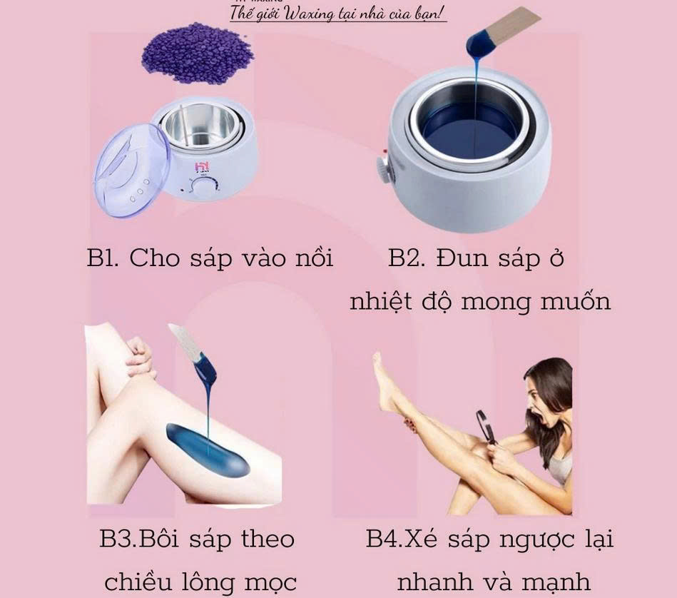 - Bước 2: Đối với phương pháp wax nóng bạn cần đun nóng sáp, kiểm tra nhiệt độ của sáp sao cho phù hợp, tránh để sáp làm bỏng da rồi mới bôi lên da.