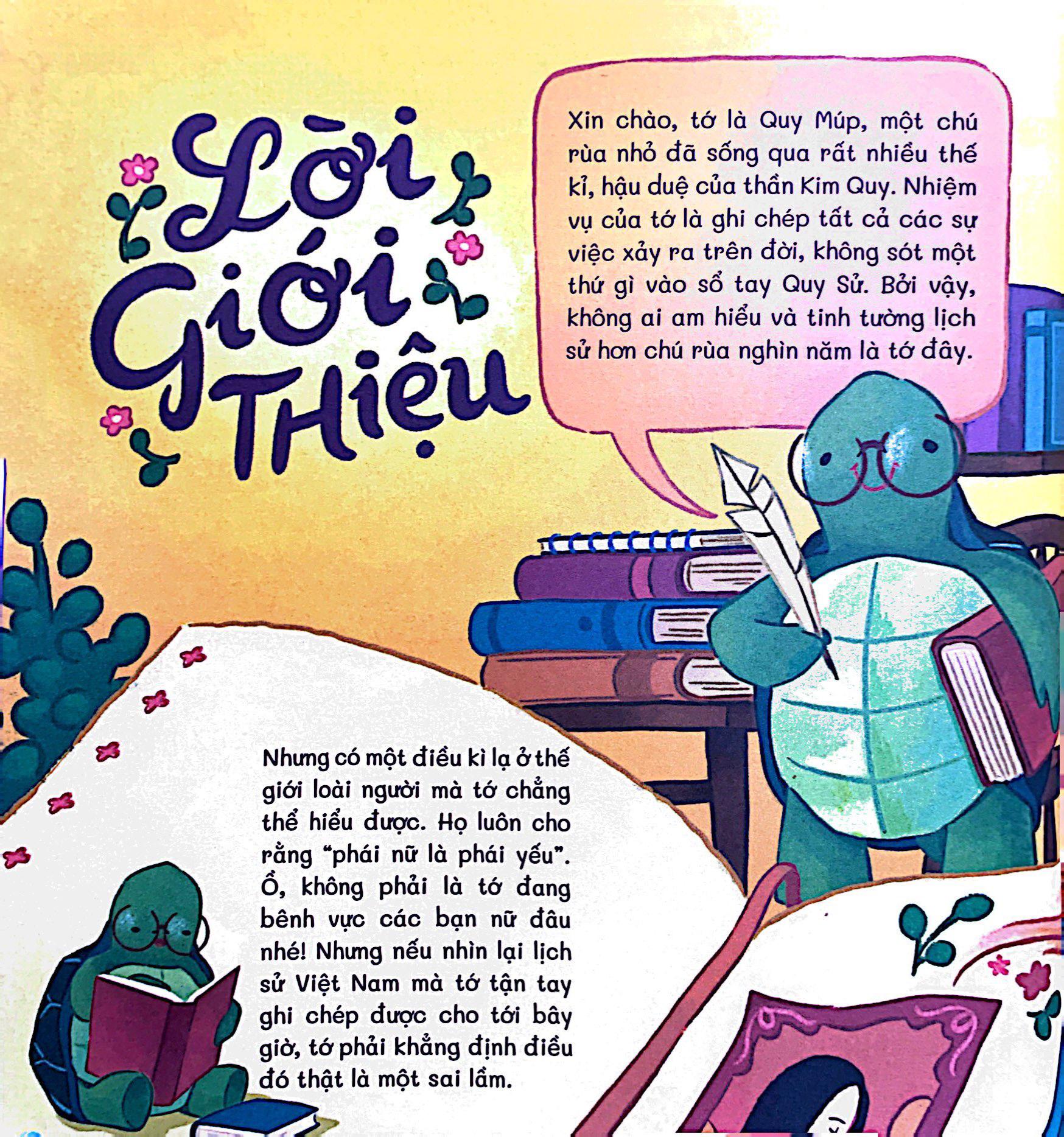 Các bạn nhỏ vẫn thường được người lớn kể cho nghe biết bao câu chuyện lịch sử mà ở đó, thường có những ông vua anh minh, được mệnh danh là “thiên tử”, những vị tướng oai dũng, tầm vóc to lớn, đầu đội trời, chân đạp đất hay những thần đồng, ông trạng cũng toàn là những người đàn ông làm vinh danh gia tộc, dòng họ hay tài trí hơn người. Sẽ thế nào nếu chúng ta cũng tìm hiểu về các giai đoạn lịch sử dân tộc nhưng thông qua câu chuyện của những người phụ nữ nhì? Để các bạn biết rằng lịch sử Việt Nam cũng có nữ hoàng, nhiều không kể xiết các vị nữ tướng anh dũng giết hàng vạn giặc và cả những tài nữ khiến đấng mày râu phải quỳ gối nể phục.