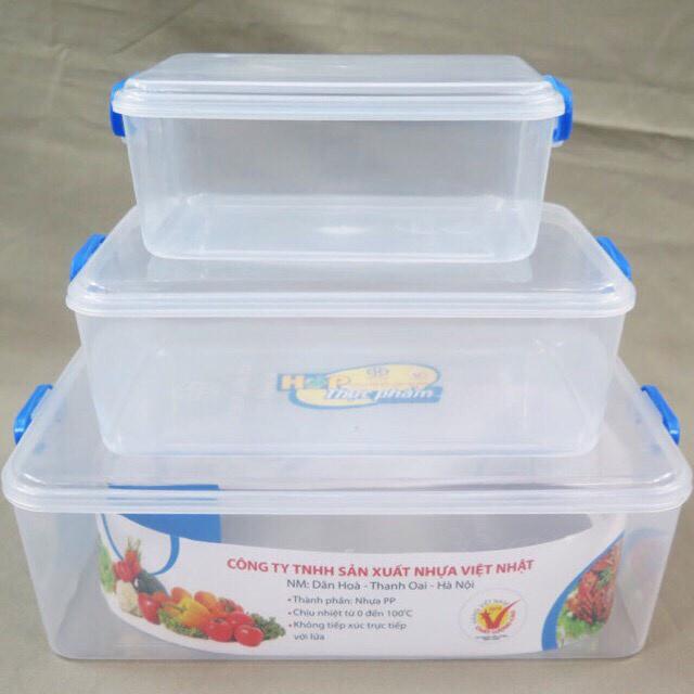 Mỗi hộp đều có nắp nhựa gài chắc chắn dẻo đậy kín giúp bảo quản thức ăn và giúp tủ lạnh không vi khuẩn xâm nhập.