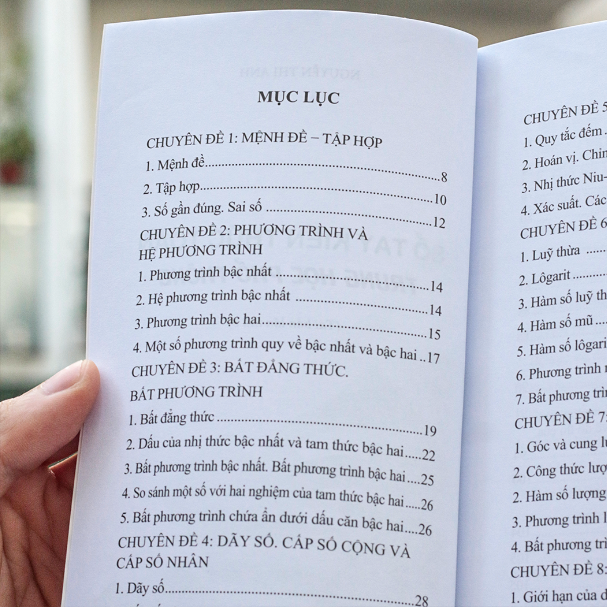 Cuốn sách được chia thành các phần sau: Đại số và Hình học