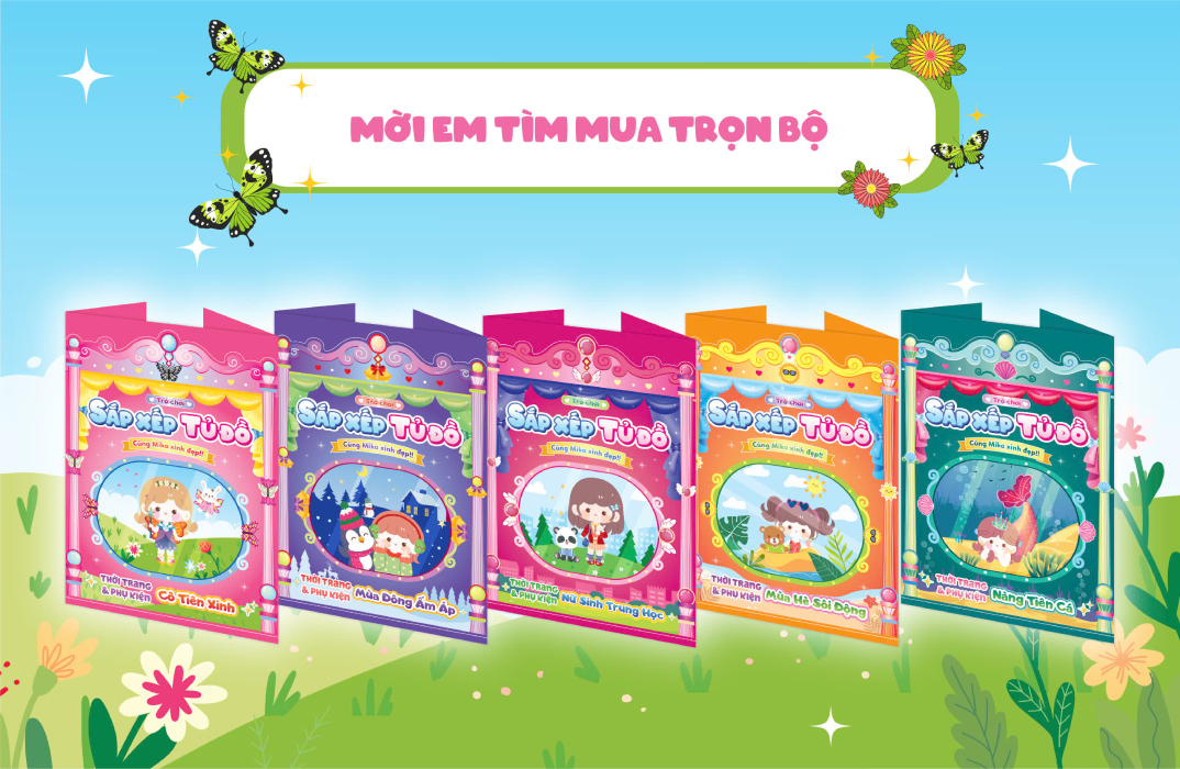 Combo Trò Chơi Sắp Xếp Tủ Đồ Cùng Mika Xinh Đẹp (Bộ 5 Cuốn) Chào các bé! Hãy cùng Mika xinh đẹp khám phá thế giới thời trang trong bộ sách đồ "Trò chơi Sắp xếp tủ đồ cùng Mika xinh đẹp"! Bộ sách trò chơi có 5 cuốn với các chủ đề: Cô tiên xinh, Học sinh trung học, Mùa đông ấm áp, Mùa hè sôi và Nàng tiên cá. Với những sticker đáng yêu và bộ tranh giấy dễ dàng tháo dỡ, các bé có thể tha hồ sáng tạo, sắp xếp tủ đồ và thay đổi trang phục cho Mika. Hãy cùng nhau bày biện tủ đồ thật ngăn nắp và tạo ra những bộ trang phục thật đẹp nhé! Bộ sách "Trò chơi Sắp xếp tủ đồ cùng Mika xinh đẹp" gồm 5 cuốn: