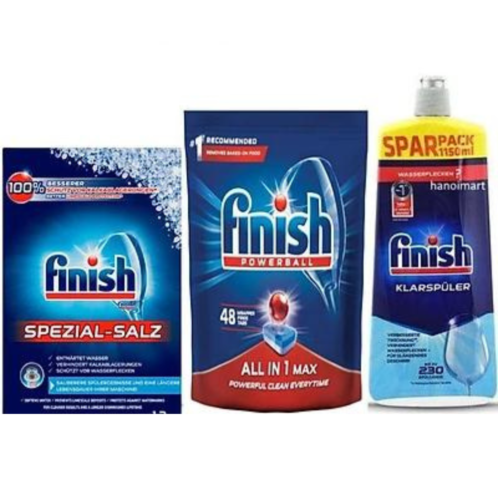 - Combo Bột rửa bát Finish 2,2kg + Muối 1,2kg + Nước làm bóng 800ml Dành cho máy rửa chén bát Là combo chất tẩy rửa hoàn hảo và tiết kiệm cho Máy rửa bát,