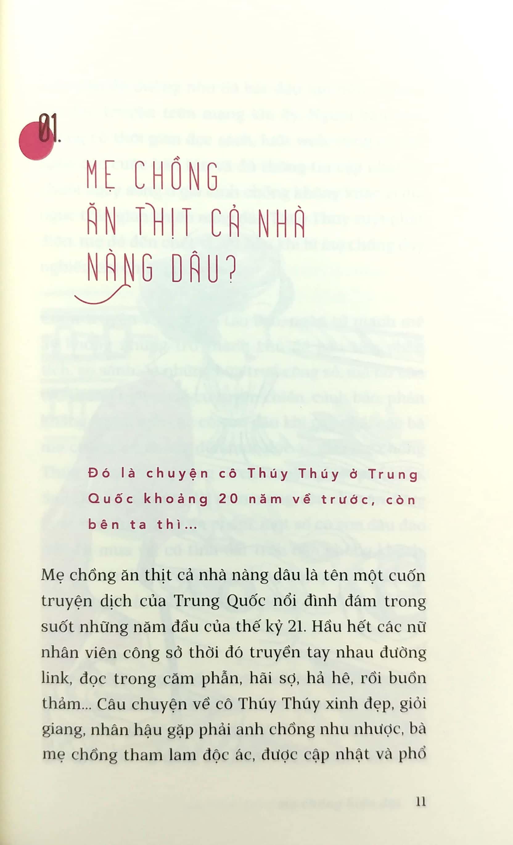 “Cuốn sách này tôi muốn dành tặng tất cả những bà mẹ có con trai và con gái. Có con trai, thì chúng ta sẽ là mẹ chồng, còn nếu có con gái thì con chúng ta cũng có thể sẽ đi làm dâu một bà mẹ chồng nào đó. Làm thế nào để tất cả những phụ nữ khi cùng yêu thương một người đàn ông sẽ vui vẻ hạnh phúc chứ không phải đứng ở hai chiến tuyến mà hét lên “Mẹ hay vợ, anh hãy chọn đi!”. Tại sao chàng trai ấy phải chọn, trong khi hoàn toàn có thể có cả hai trong yêu thương?”