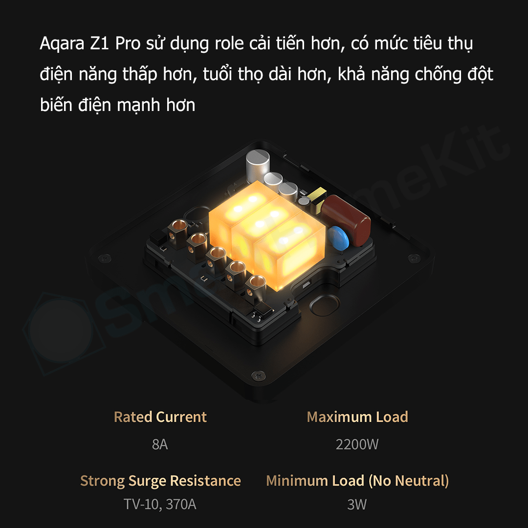 - Công suất tải lên đến 2200W 8A lõi công tắc cao cấp