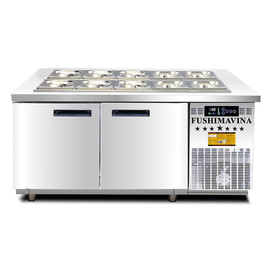 Bàn Lạnh 1m5 Cánh Inox Fushimavina | Tủ Mát Bàn Chặt 2 Cánh | Dung Tích 320L
