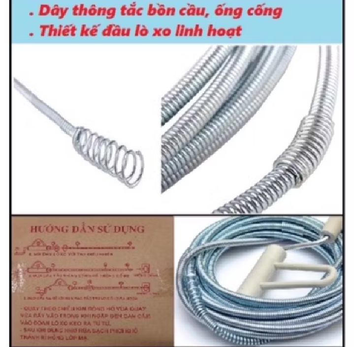 cuộn dây thông cống Dây thông cống DÀI 5m: Cống thoát nước, bồn rửa... sử dụng lâu dễ bị tắc nghẽn do cặn bẩn hay tóc... làm nước thoát chậm hoặc không thoát được