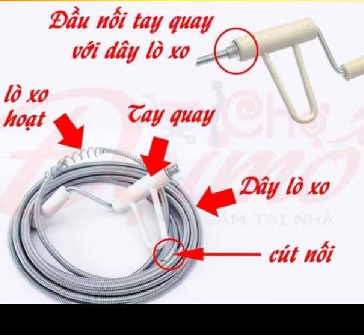Cuộn dây lò so thông tắc đường ống nước ống cống sử dụng quay tay Lưu ý Khi thông ống nên đổ nước đầy ống rồi quay theo chiều kim đồng hồ để dây từ