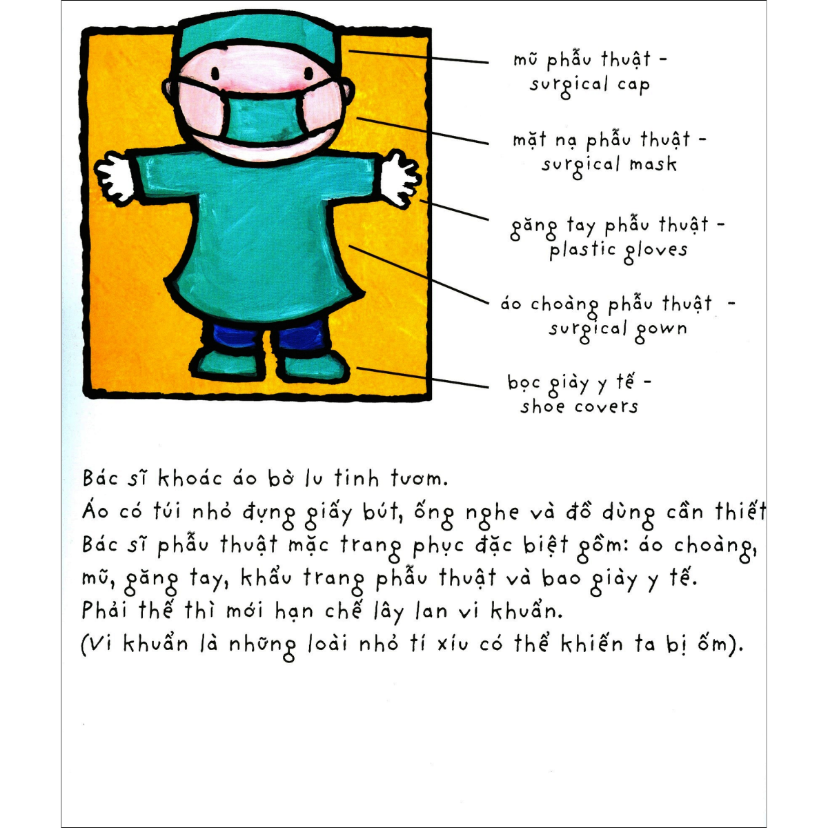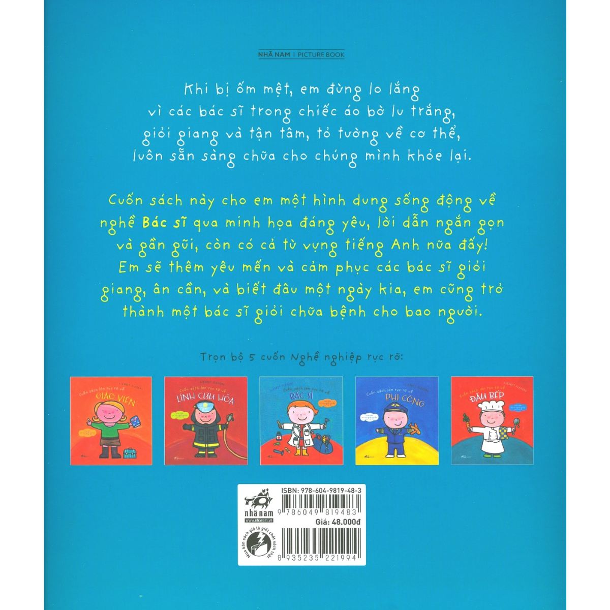 Cuốn sách này cho em một hình dung sống động về nghề Bác sĩ qua minh họa đáng yêu, lời dẫn ngắn gọn và gần gũi, còn có cả từ vựng tiếng Anh nữa đấy! Em sẽ thêm yêu mến và cảm phục các bác sĩ giỏi giang, ân cần, và biết đâu một ngày kia, em cũng trở thành một bác sĩ giỏi chữa bệnh cho bao người.