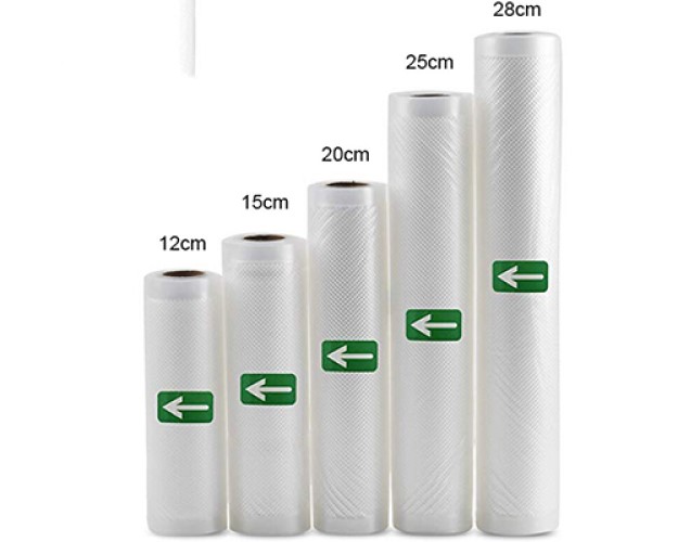 - Cuộn túi hút chân không một mặt trơn và một mặt nhám có đường gân này chỉ được sử dụng cho các dòng máy hút chân không gia đình