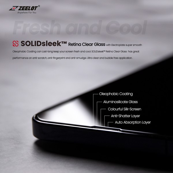 Mua tại TiktokKính Cường Lực ZEELOT SOLIDSLEEK Chống Vân Tay Có Viền Đen cho iPhone 13Mini/13Pro/13ProMax - Hàng chính hãng Tính Năng Sản Phẩm -Công nghệ SOLIDsleek độc quyền của Zeelot. Vượt qua 6 bài test: