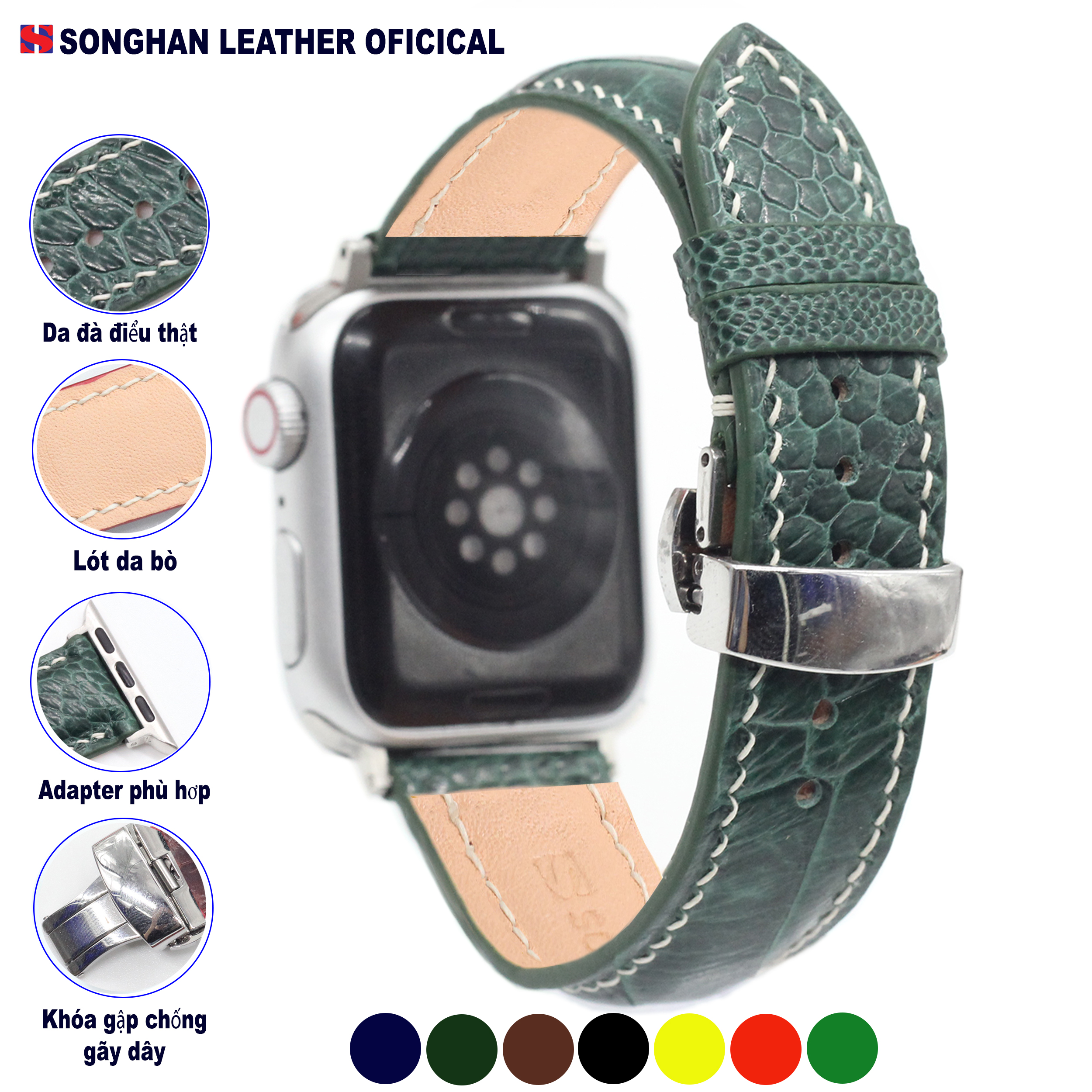 Dây da Apple Watch ĐÀ ĐIỂU handmade cao cấp nhiều màu chỉ trắng size 20mm, 22mm