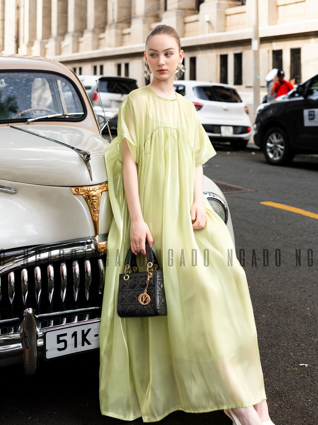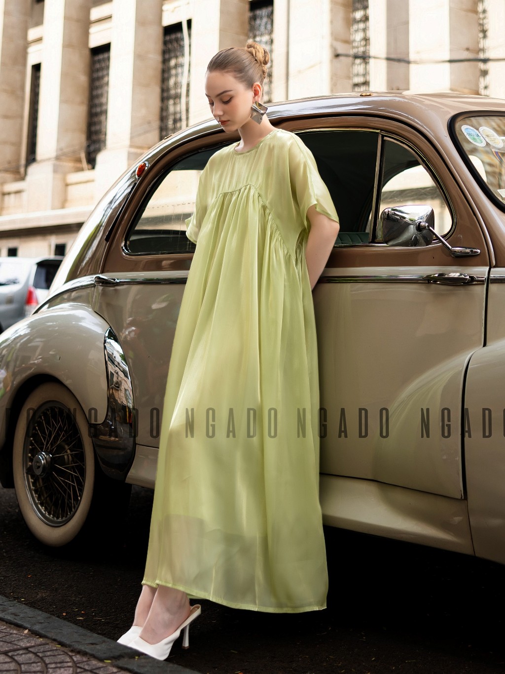 ✨Đầm babydoll xanh đậu NGADO, Đầm suông, Đầm phom rộng, Đầm xòe, Đầm voan tơ thiết kế