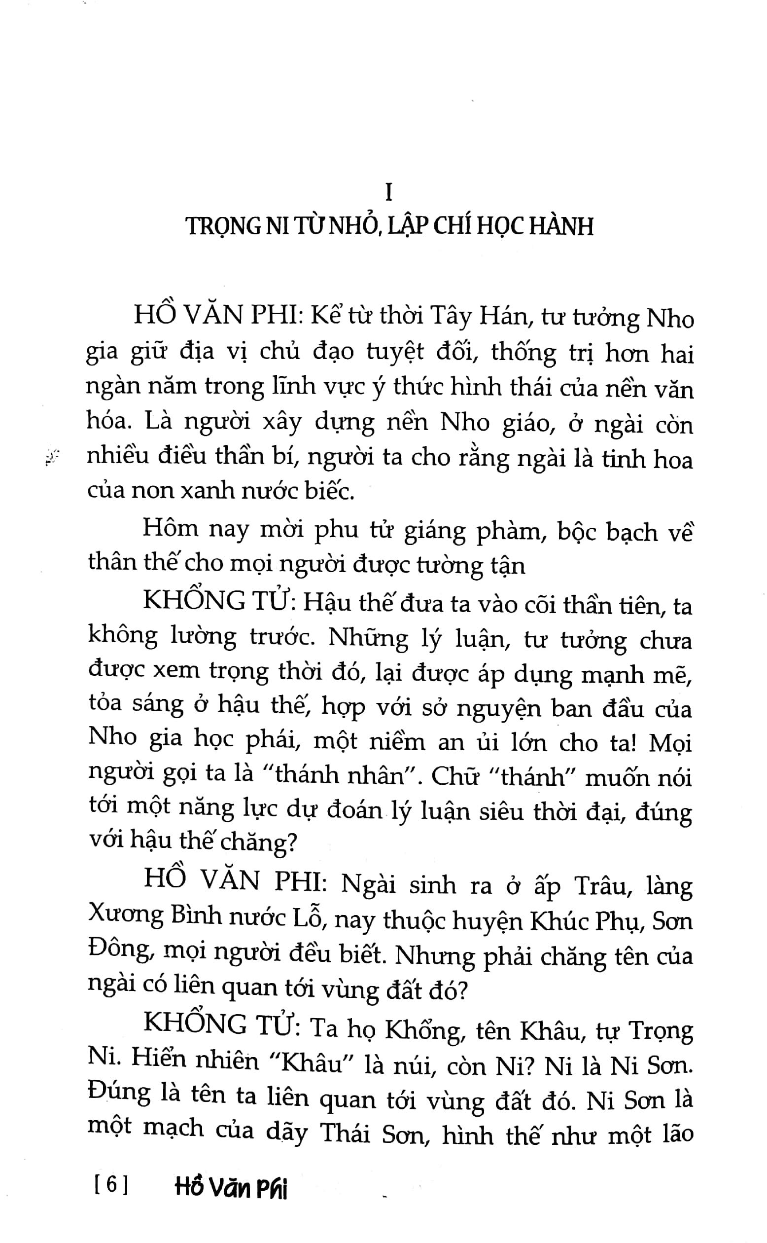 Đàm Đạo Với Khổng Tử Khổng Tử được suy tôn là nhà sáng lập Nho giáo - thường được người Trung Quốc thời đó tin theo như một tôn giáo - đồng thời Khổng Tử cũng được thế giới ngày nay biết đến như một giảng sư và triết gia lỗi lạc của văn hóa phương Đông. Trải qua nhiều thế kỉ, bối cảnh kinh tế - chính trị - xã hội thế giới đã có nhiều thay đổi nhưng những triết lí của Khổng Tử lúc sinh thời vẫn khiến nhiều thế hệ độc giả yêu thích và muốn tìm hiểu. “Đàm đạo với Khổng Tử” là những câu chuyện đối đáp giữa tác giả Hồ Văn Phi và Khổng Tử xoay quanh các tư tưởng, triết lí của ông được người đời ngưỡng mộ.