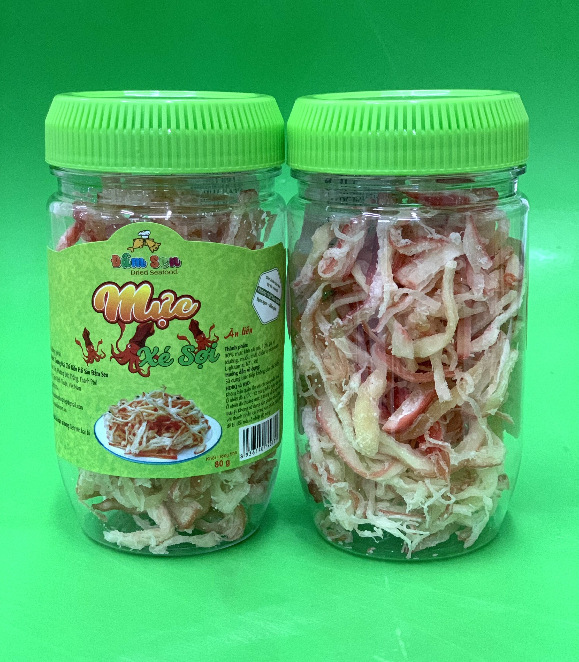 - Mực khô xé sợi hộp 200 gram được chế biến từ mực tươi còn mi nơ tại Cảng cá Phan Thiết tỉnh Bình Thuận. - Mực khô xé sợi được chế biến theo quy trình khép kín sấy khô mực xé sợi giòn bởi vị ngọt ngon đậm đà, mặm mòi đặc