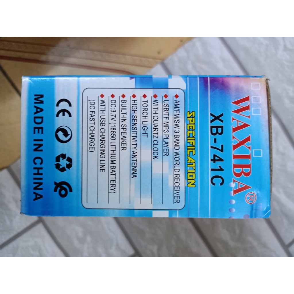 Chi tiết sản phẩm-ĐÀI RADIO USB NGHE NHẠC WAXIBA XB-741C-SỬ DỤNG PIN SẠC 18650 cho thời lượng nghe bền hơn ( TÍCH HỢP BÊN TRONG SẢN PHẨM)- Bắt sóng AM/ FM/ SW VỚI TÍN HIỆU TỐT- HỖ TRỢ CỔNG USB,THẺ NHỚ NGHE NHẠC MP3- CÓ ĐỒNG HỒ XEM GIỜ ĐƯỢC ĐẶT Ở MẶT TRƯỚC SẢN PHẨM RẤT TIỆN LỢI- Có Hỗ Trợ đèn pin siêu sáng- KÍCH THƯỚC khoảng 17048 10mm-Chất lượng bắt sóng tốt , âm thanh lớn rõ nétĐÀI LOA WAXIBA XB-XB741C SIÊU HAY CÓ ĐỒNG HỒ , NGHE NHẠC USB THẺ NHỚ RADIO AM FM SW CÓ ĐÈN PIN THEO KÈM PIN SẠC
