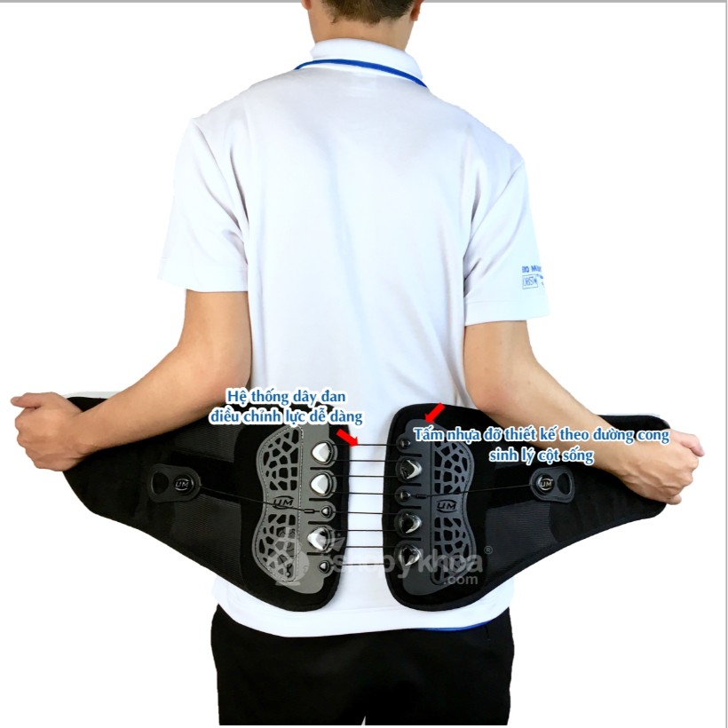 Đai lưng chỉnh hình cột sống UM (A03) có thiết kế hình dạng giải phẫu kèm thanh nẹp cao cấp, đảm bảo tư thế hoàn hảo và bất động hiệu quả. CHỈ ĐỊNH - Đau