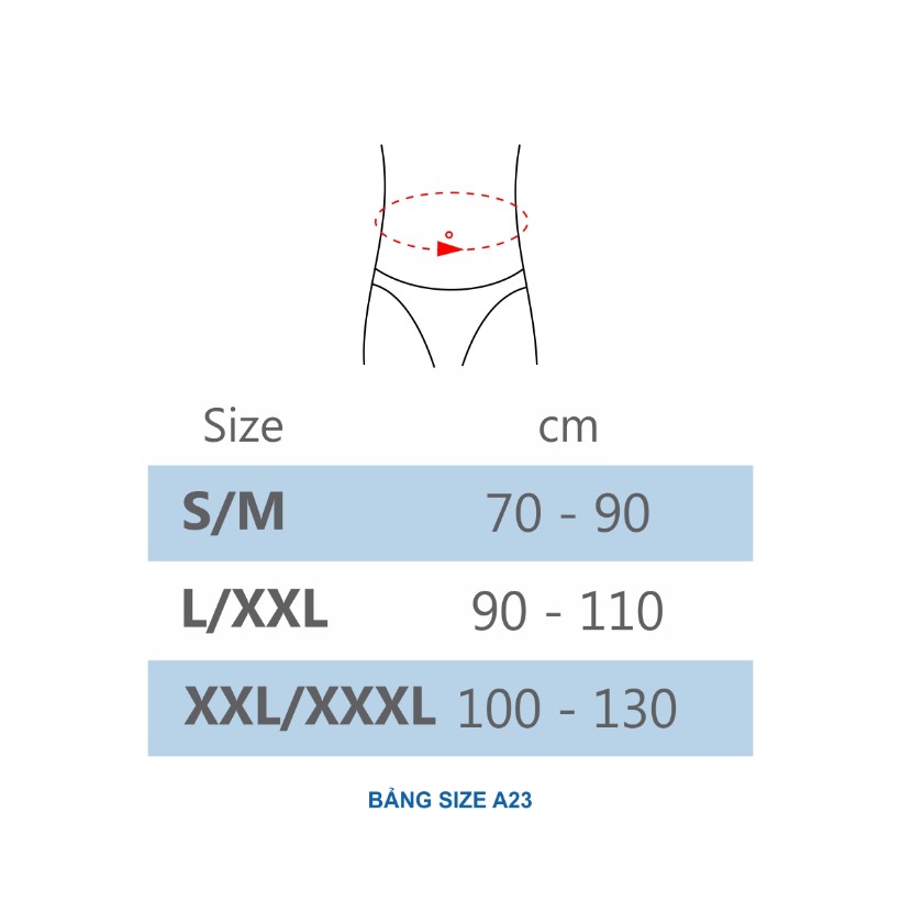 Quý khách vui lòng chọn size theo vòng bụng Size S: 50 - 65 cm Size M: 65 - 80 cm Size L: 80 - 95 cm Size XL: 95 - 110 cm Size XXL: