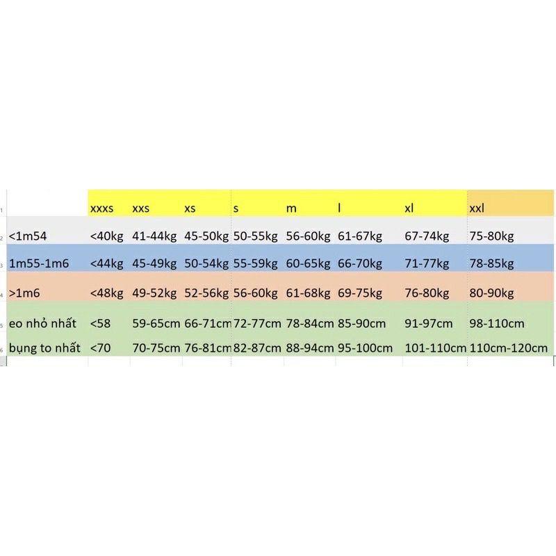size từ xxxs tới xxl