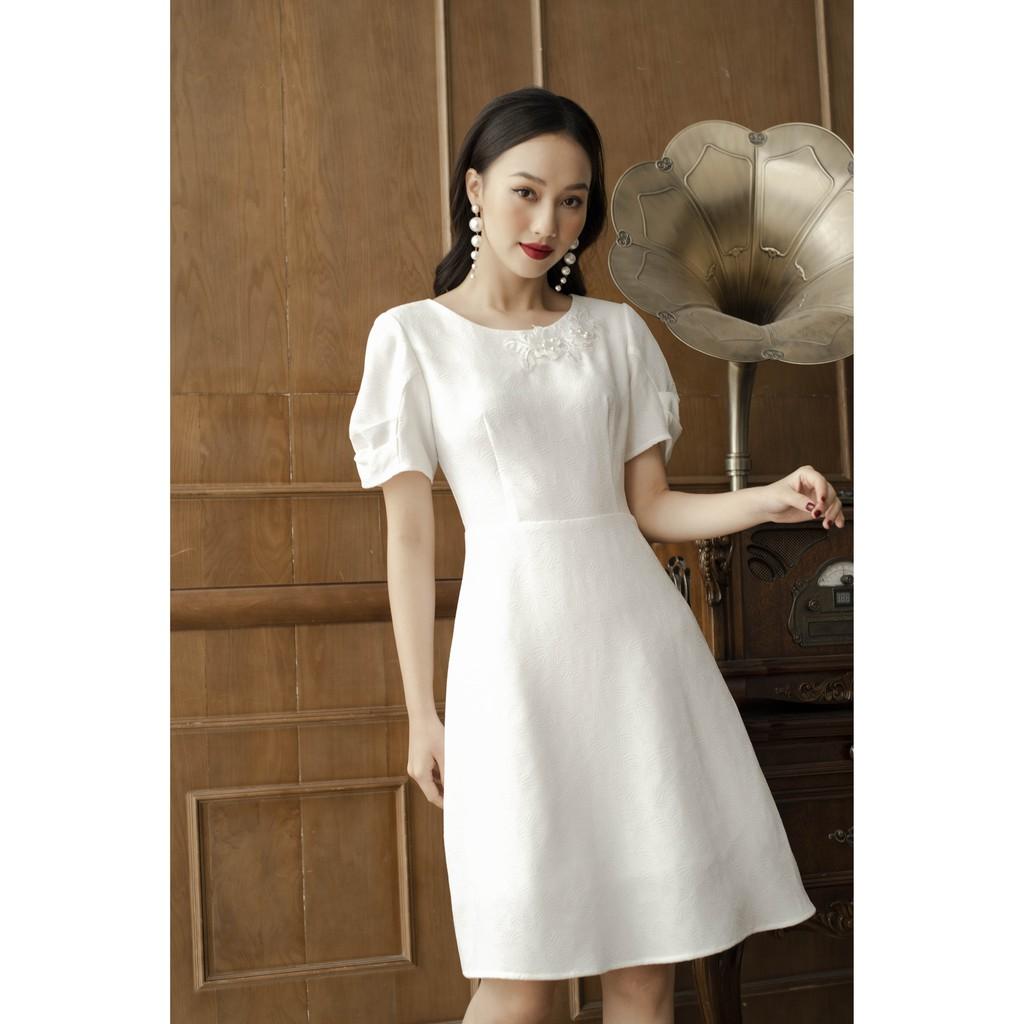 Đầm voan tay ngắn họa tiết lập thể -14201 - LH zalo: 0912335038 #damtrungnien #vaytrungnien #vaydep