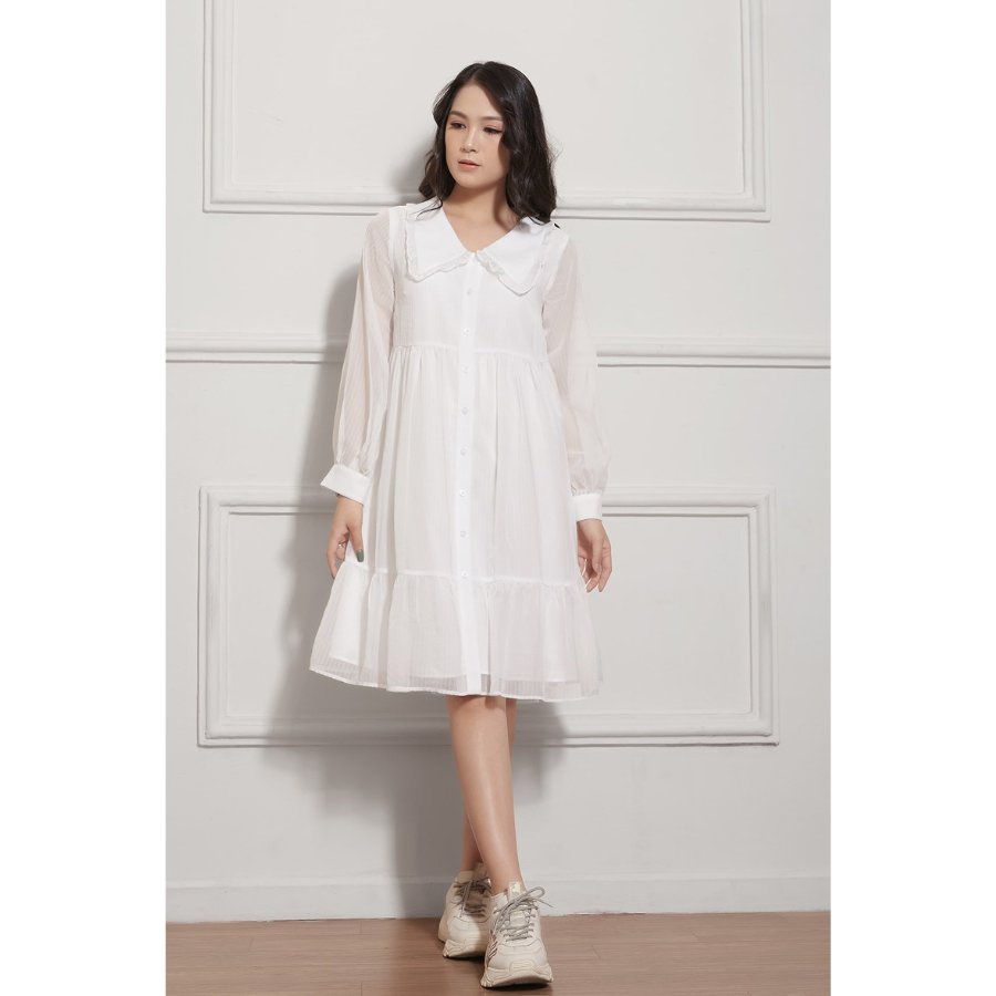 ღ THÔNG TIN SẢN PHẨM: Tên sản phẩm: Đầm trắng cổ sơ mi tay dài Chất liệu: Chất tafta Chi tiết sản phẩm: không lót, không túi Thông số size: S, M,
