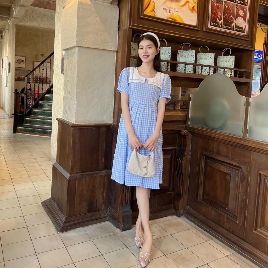 ✨Đầm bầu karo cổ thuỷ thủ phom babydol trẻ trung, đáng yêu