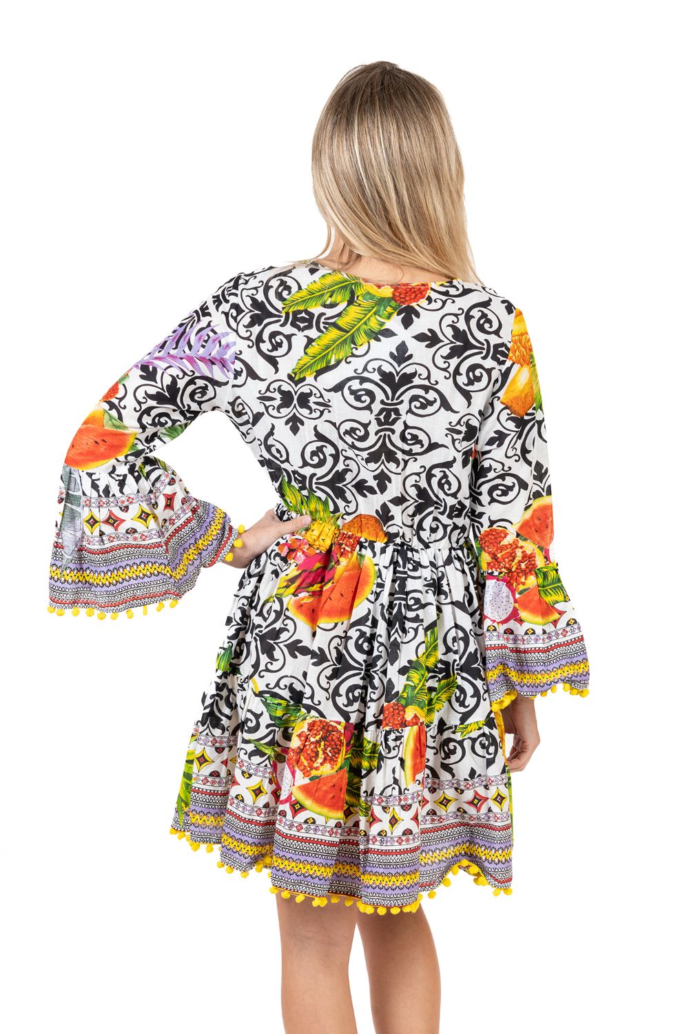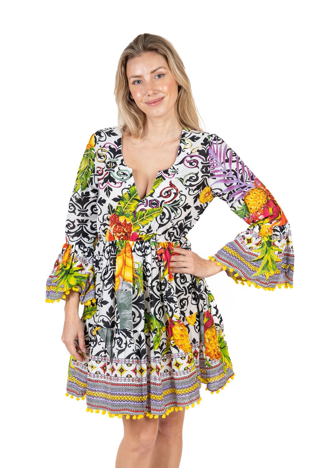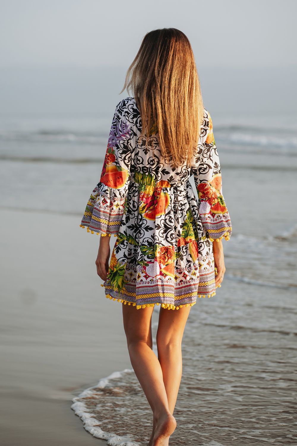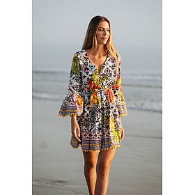 Đầm Boho Dài Tay Isla Bonita, chất lụa cao cấp, mềm mại, thun co giãn ở eo. Phom suông xòe rộng. Dài đầm 90cm (45x90) Phù hợp đi biển, dạo phố, công sở, hoặc dự