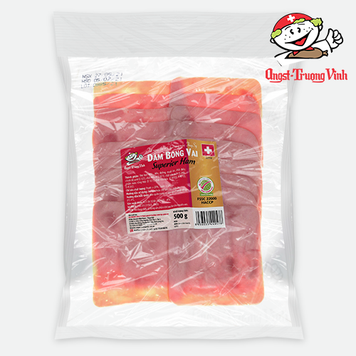 Dăm bông vai cắt lát 500g là sản phẩm được sản xuất từ nguồn nguyên liệu thịt heo tươi ngon, được chọn lọc kỹ lưỡng và các loại gia vị chủ yếu nhập khẩu từ Châu Âu mang lại hương vị đặc trưng. Dăm bông vai là món ăn thơm ngon, tiện lợi, cung cấp nhiều chất dinh dưỡng và là nguyên liệu để chế biến nhiều món ăn hấp dẫn khác nhau.
