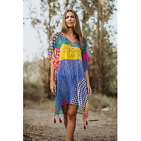 Đầm Boho Dài Tay Isla Bonita, chất lụa cao cấp, mềm mại, thun co giãn ở eo. Phom suông xòe rộng. Dài đầm 90cm (45x90) Phù hợp đi biển, dạo phố, công sở, hoặc dự