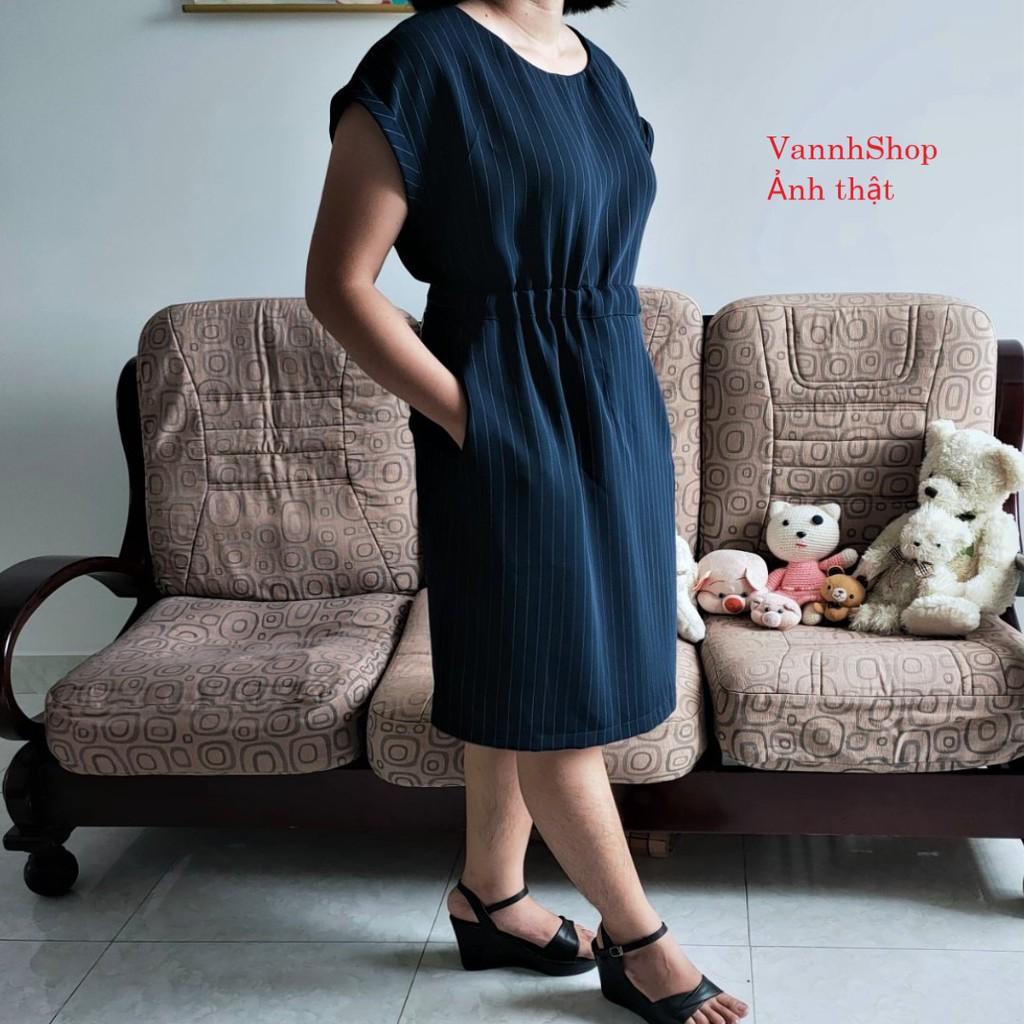 ✨Đầm dáng suông - Đầm nữ kẻ sọc kèm dây lưng phong cách công sở xuân hè -Thiết kế Vannhshop Ms D11 kèm ảnh thật