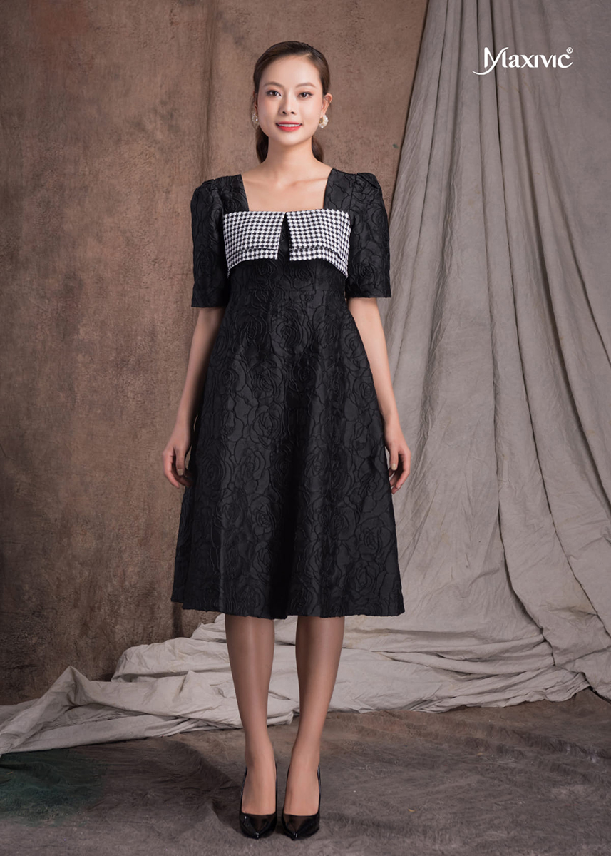 Mua tại TiktokĐầm Đen Hoa Nổi Cổ HQ Maxivic M012207
