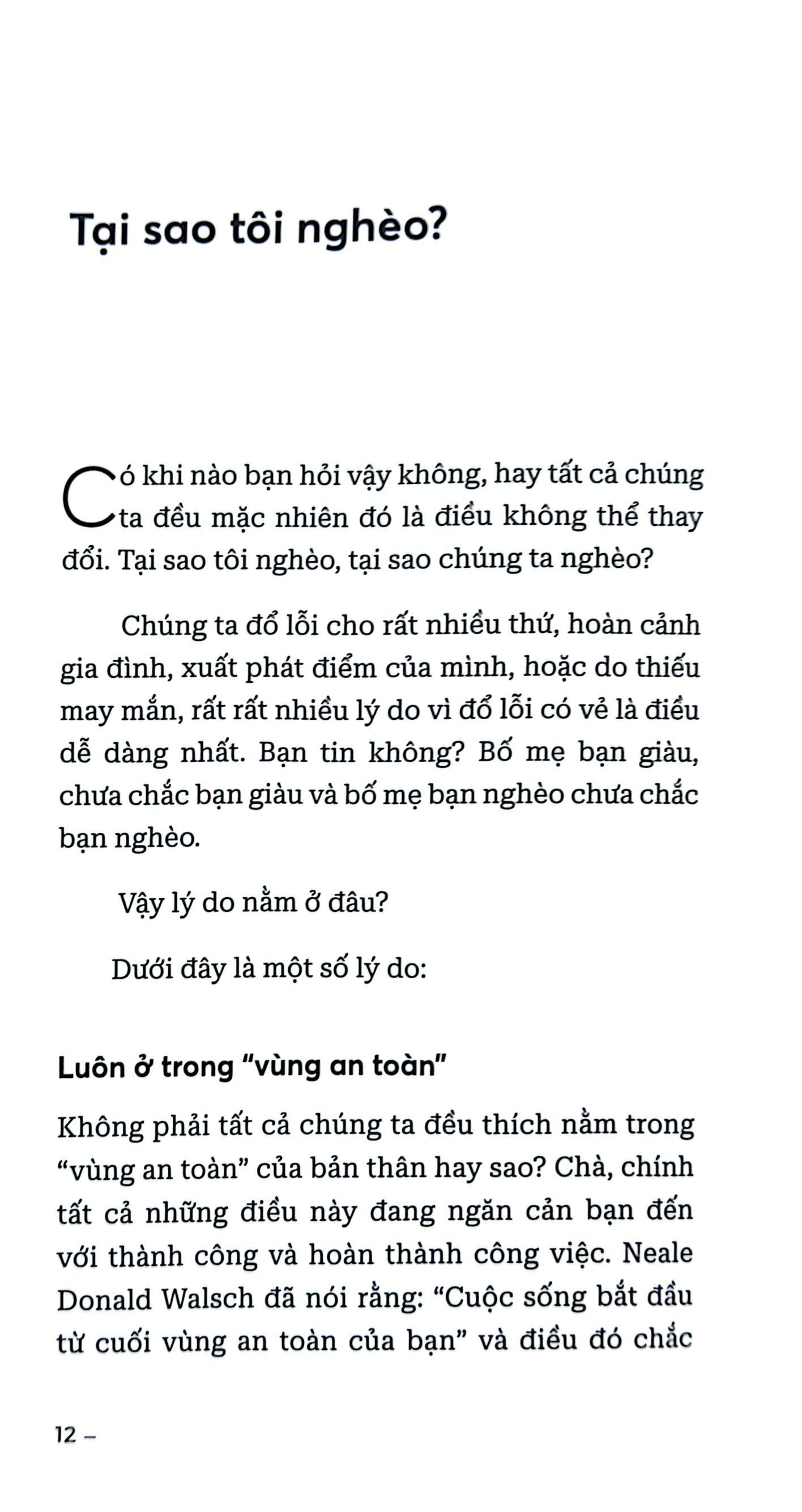 Có không ít những cuốn sách trên thị trường đã chia sẻ về cách quản lý tài chính, đầu tư sinh lợi hay nghệ thuật khởi nghiệp. Cuốn sách này tập trung vào những vấn đề bạn đang gặp phải khiến cuộc đời bạn như một mớ bòng bong, chăm chỉ nhưng vẫn chẳng đủ tiền cho những thứ vật chất mong muốn, hay đơn giản hơn là sống thoải mái, ít lo nghĩ.