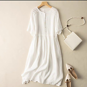 Đầm Suông Linen Cổ Đức,Váy Sơ mi Công Sở, Dạo Phố - Phong Cách Thời Trang Hàn Quốc