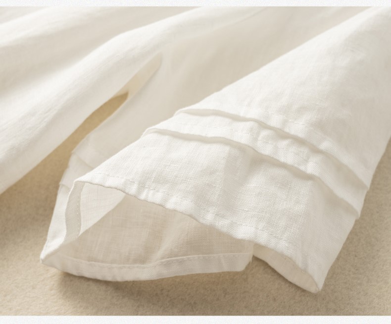 Chất liệu:  100% Linen. Được làm từ cây lanh, loài thực vật cần rất ít nước tưới và giúp thúc đẩy đất đai màu mỡ cũng như đa dạng sinh học. Sợi vải rất thoáng