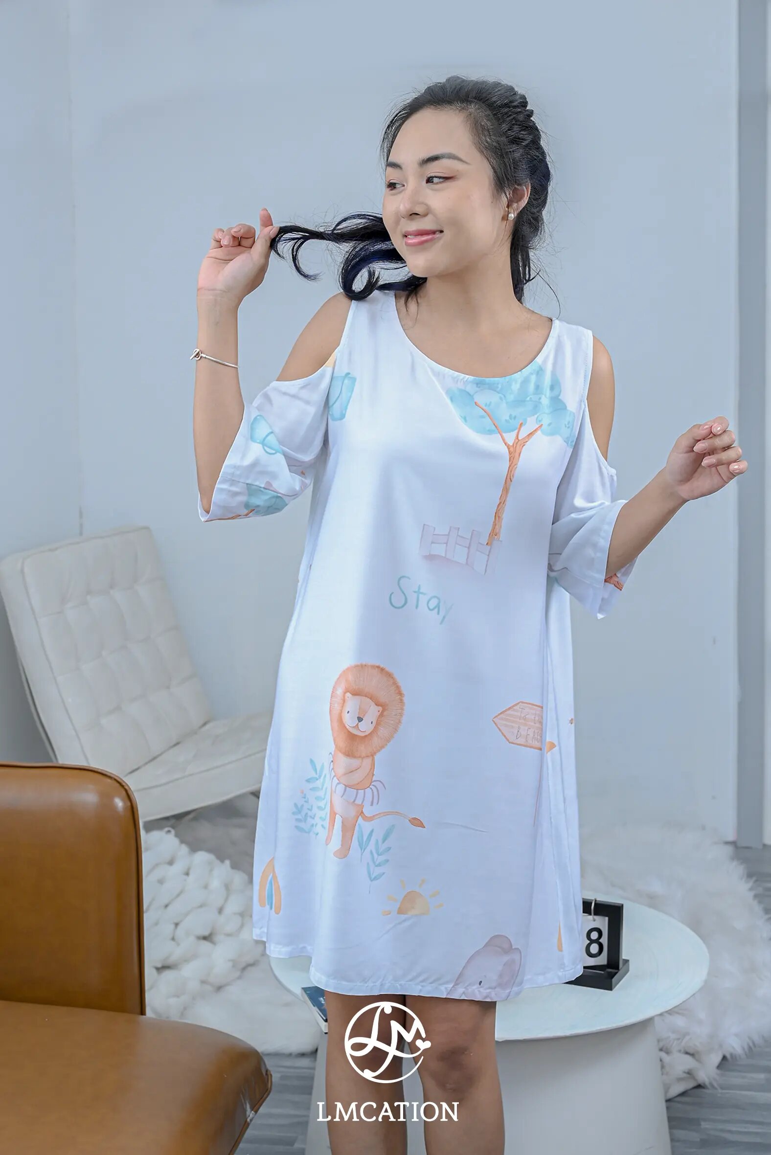 Hãy thư giãn trong sự thoải mái bền vững! Đầm mặc nhà khoét vai LMcation Tencel vô cùng thoáng mát và nhẹ nhàng trên da, bạn sẽ muốn mặc nó cả ngày cho mà xem!