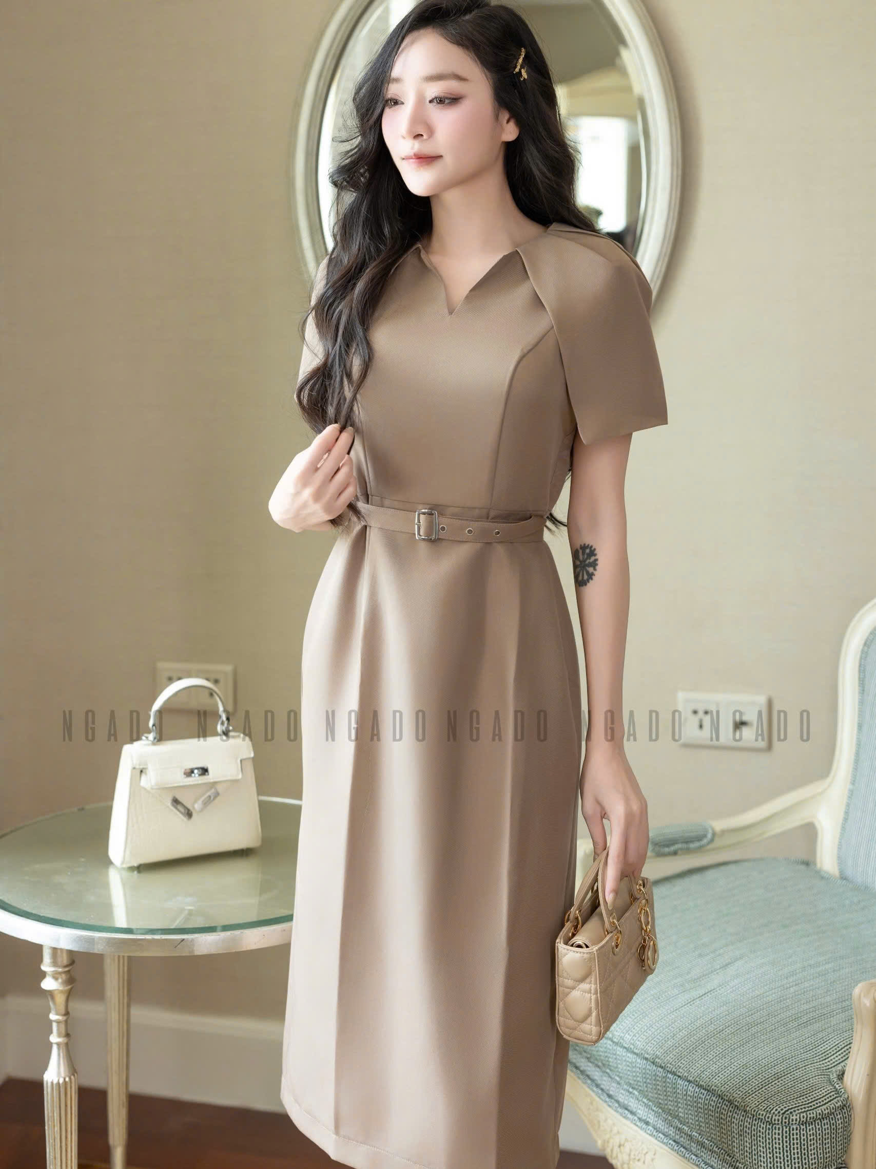 ✨Đầm nâu tay xếp ly NGADO , đầm công sở , đầm dự tiệc