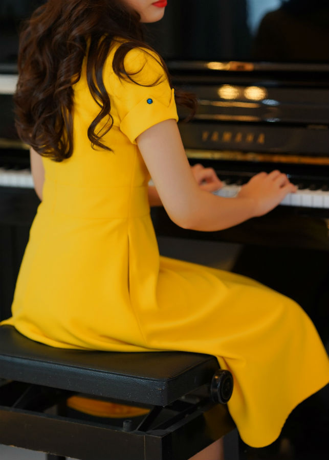 Đầm vàng như nắng sớm, yêu kiều và mong manh mềm như tơ, nền vải ánh kim sang trọng #fashion