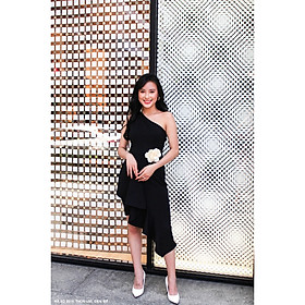Đầm Ôm Đi Tiệc - tôn dáng kiêu sa - dáng đầm ôm tôn 3 vòng cơ thể từng đường nét - vai đắp xếp ly 1 bên cá tính - cổ tròn - tay sát