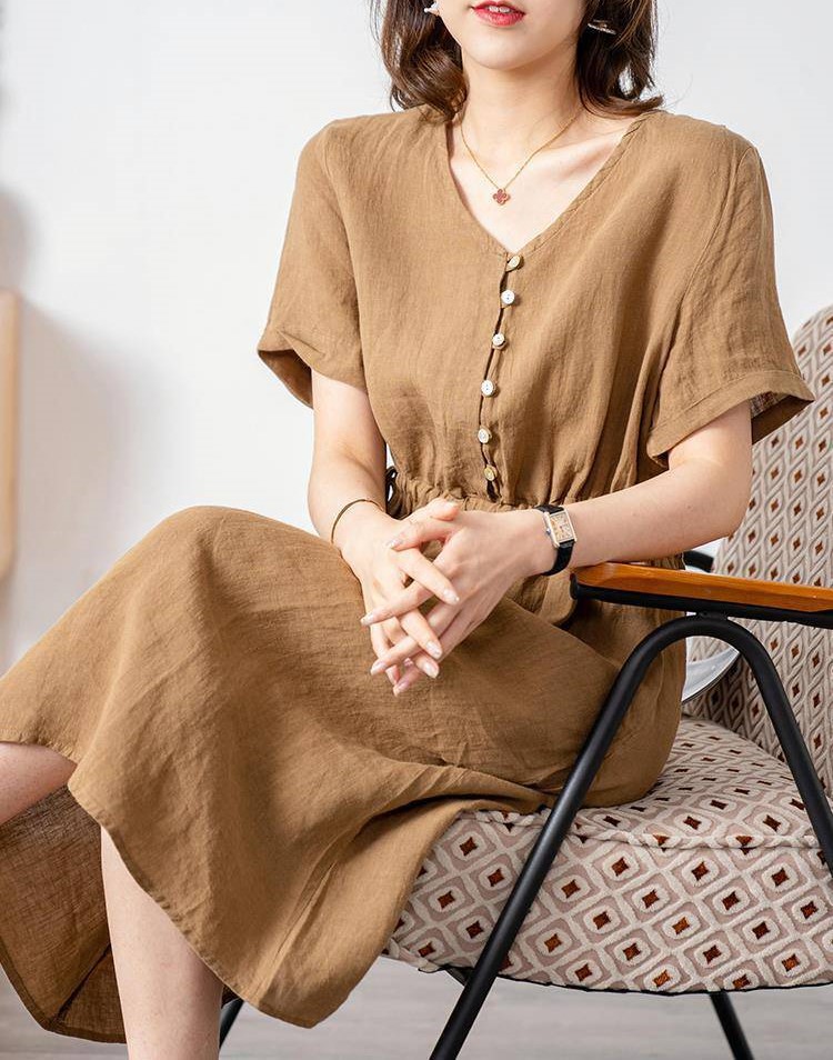 Váy linen dáng suông cổ sơ mi cực sang phù hợp mọi lứa tuổi