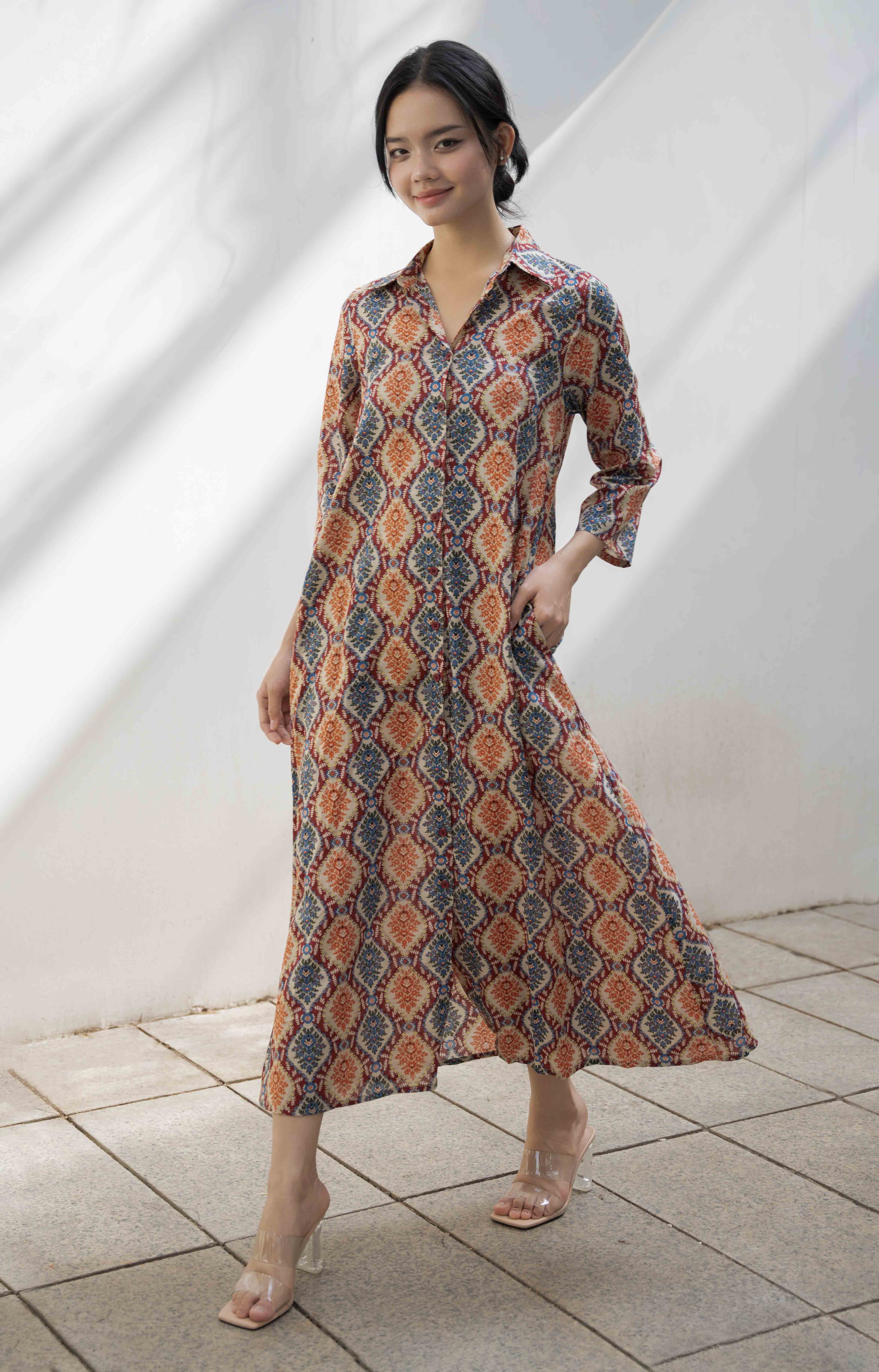 Đầm Sơ Mi Cotton Isla Bonita, chất liệu cotton 100% mềm mại. Đầm giấu quần, phối với quần short, legging. Phom suông. Dài đầm 105cm (45x105) Phù hợp đi biển, dạo phố, công sở, hoặc