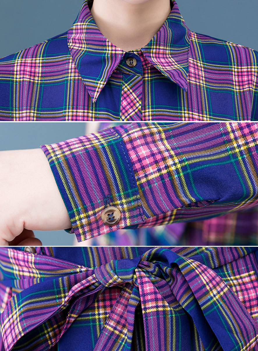 Váy sơ mi dáng dài nữ - đầm sơ mi kẻ thắt eo đi biển công sở