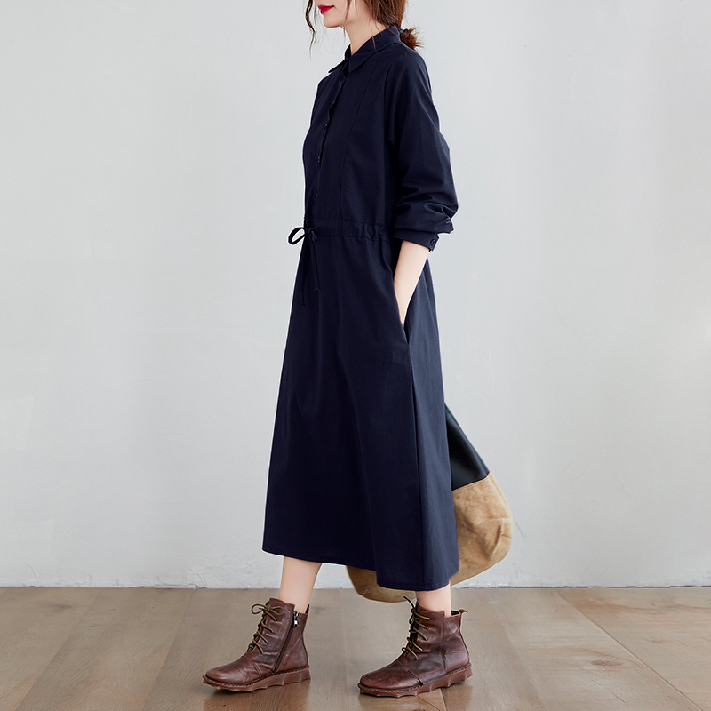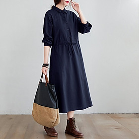 ღ THÔNG TIN SẢN PHẨM:   Tên sản phẩm: Đầm sơ mi xanh navy   Chất liệu: Chất gân ý   Chi tiết sản phẩm: không lót, không túi   Thông số size: S, M, L,