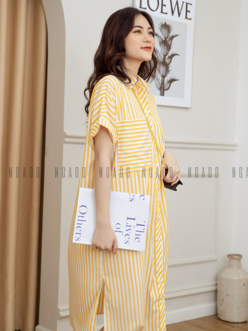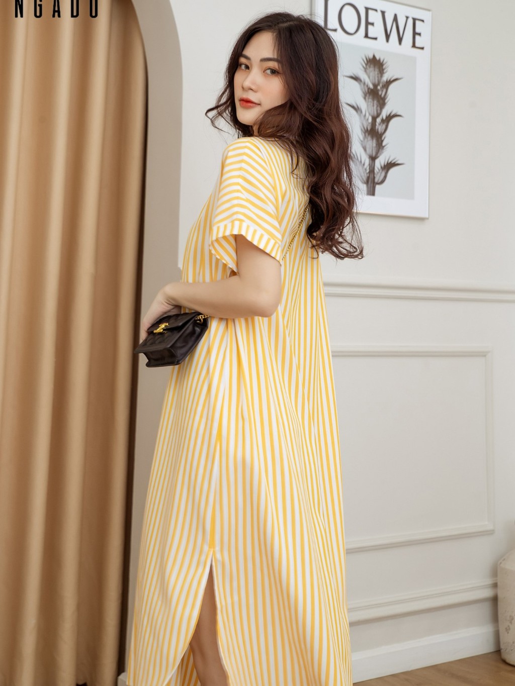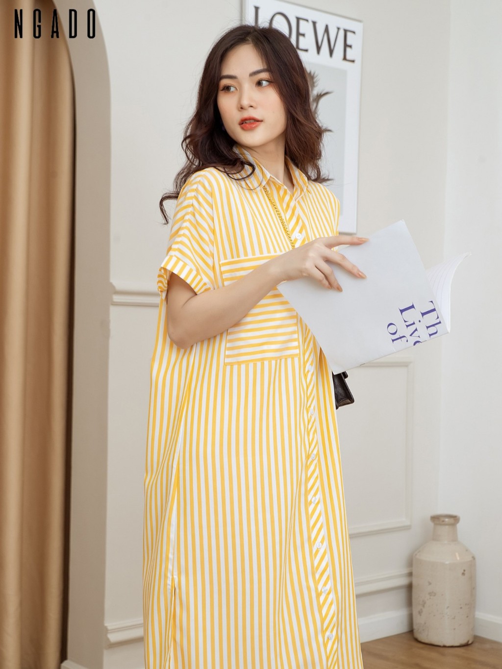 ✨Đầm sơ mi sọc vàng NGADO