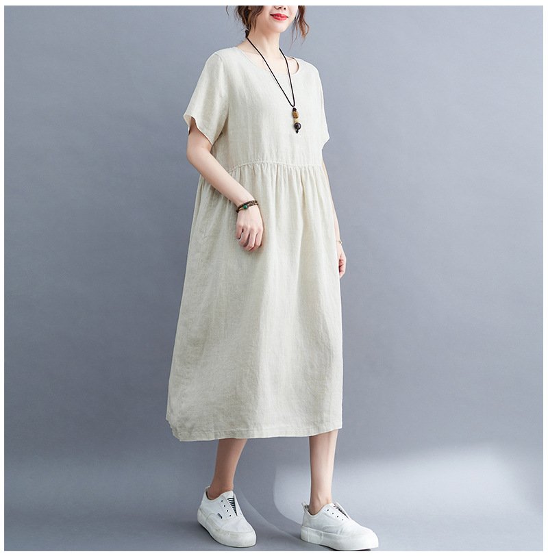 ✨Đầm Suông Cổ Tròn Tay Cộc Dáng Dài Chất Đũi Mềm Mại Haint Boutique