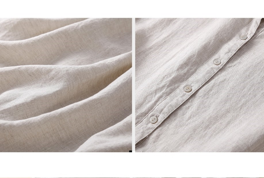 Chất liệu:  100% Linen. Được làm từ cây lanh, loài thực vật cần rất ít nước tưới và giúp thúc đẩy đất đai màu mỡ cũng như đa dạng sinh học. Sợi vải rất thoáng
