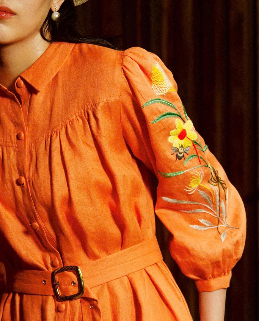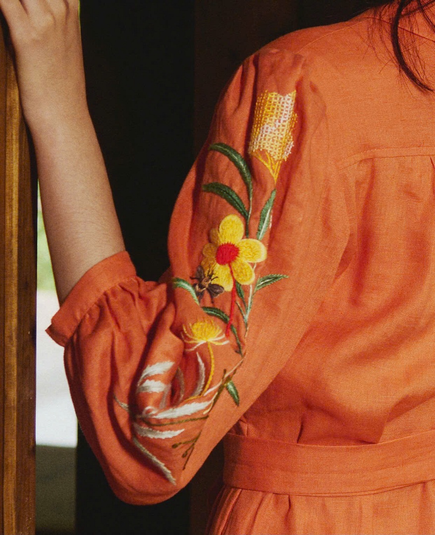 Phong cách của người phụ nữ trong chiếc đầm thêu tay này chính là sự hòa quyện hoàn hảo giữa vẻ đẹp dịu dàng, đằm thắm nhưng vẫn mang nét mạnh mẽ, hiện đại. Đây là trang phục lý tưởng cho những ai muốn thể hiện gu thẩm mỹ tinh tế, đậm chất nghệ thuật trong từng chi tiết.