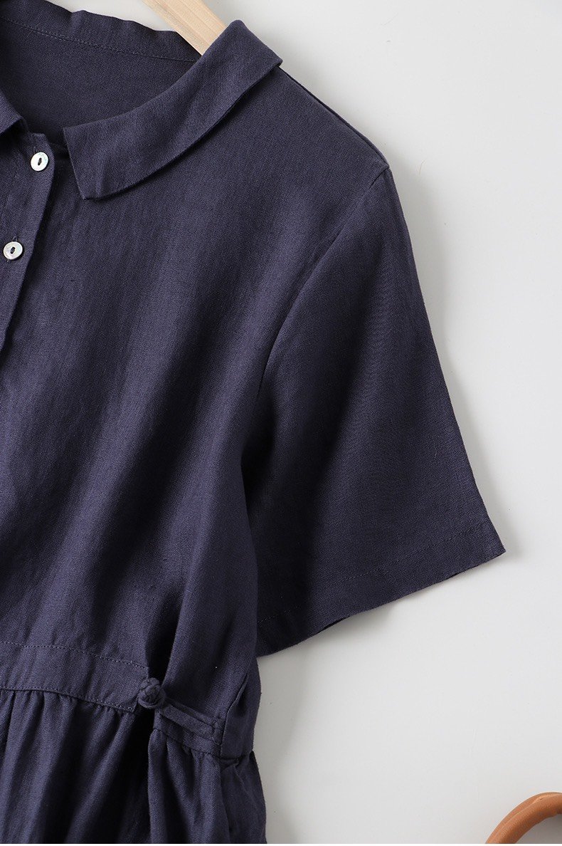 Váy linen suông đẹp cổ chữ v, 2 túi hông váy phù hợp công sở du lịch, mặc nhóm
